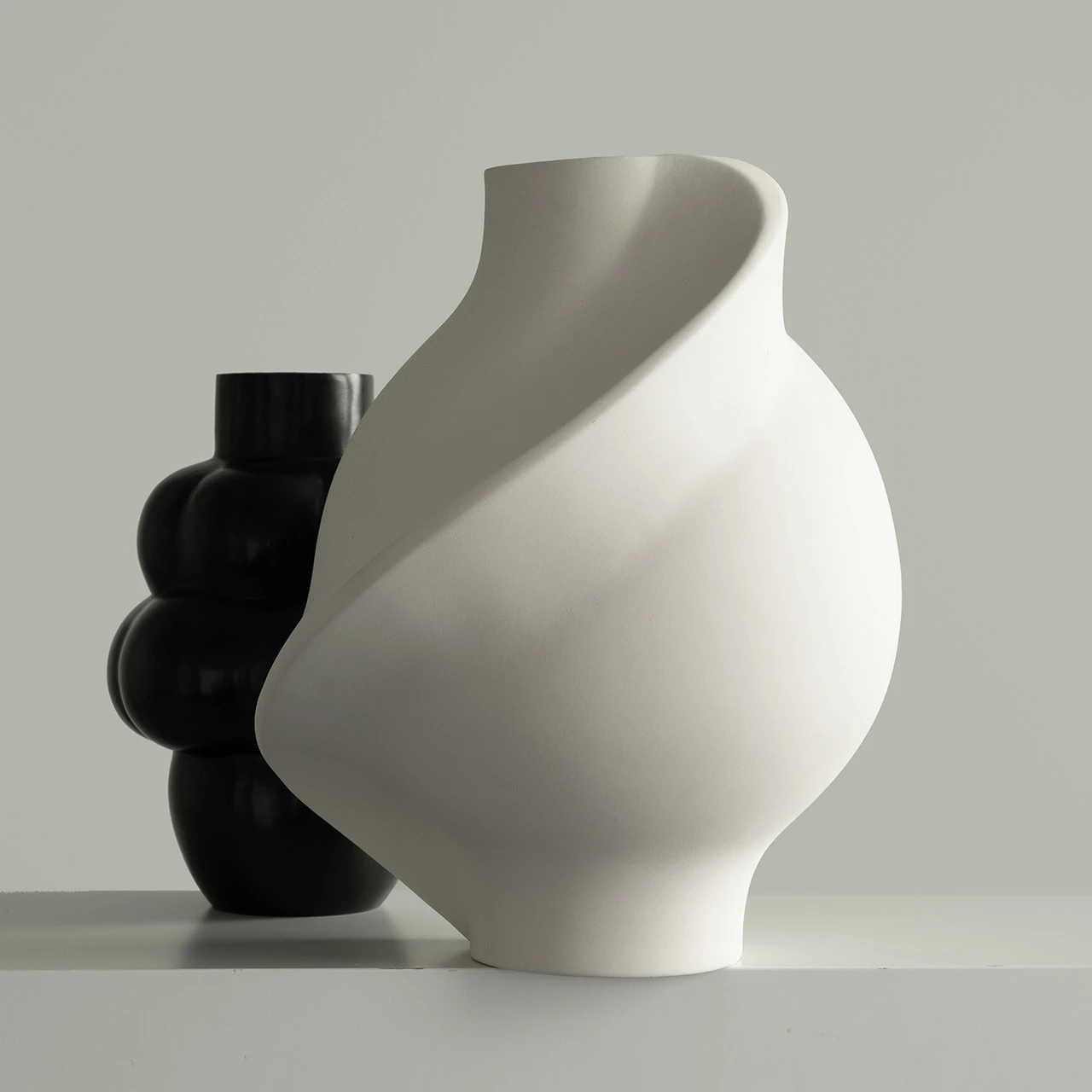 Bei Louise Roe trifft avantgardistische Designsprache auf raffinierte Schlichtheit – die 22 cm hohe Keramik-Vase besticht durch die minimalistische, wellenartige Formgebung und ist auch ohne Inhalt ein wahres Kunstobjekt. In ihrem neutralen, satten Weiß setzt sie Lifestyle-Akzente und schafft so anspruchsvolle Alltags-Ästhetik.