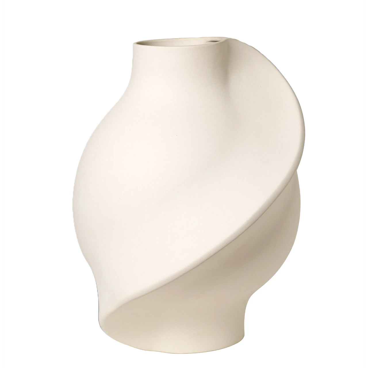 Bei Louise Roe trifft avantgardistische Designsprache auf raffinierte Schlichtheit – die 42 cm hohe Keramik-Vase besticht durch die minimalistische, wellenartige Formgebung und ist auch ohne Inhalt ein wahres Kunstobjekt. In ihrem neutralen, satten Weiß setzt sie Lifestyle-Akzente und schafft so anspruchsvolle Alltags-Ästhetik.