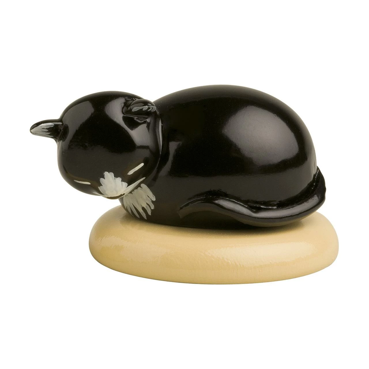 Die Katze im majestätischen Schwarz scheint zu schlummern, hat aber garantiert ein wachsames Auge auf das Mäuschen.