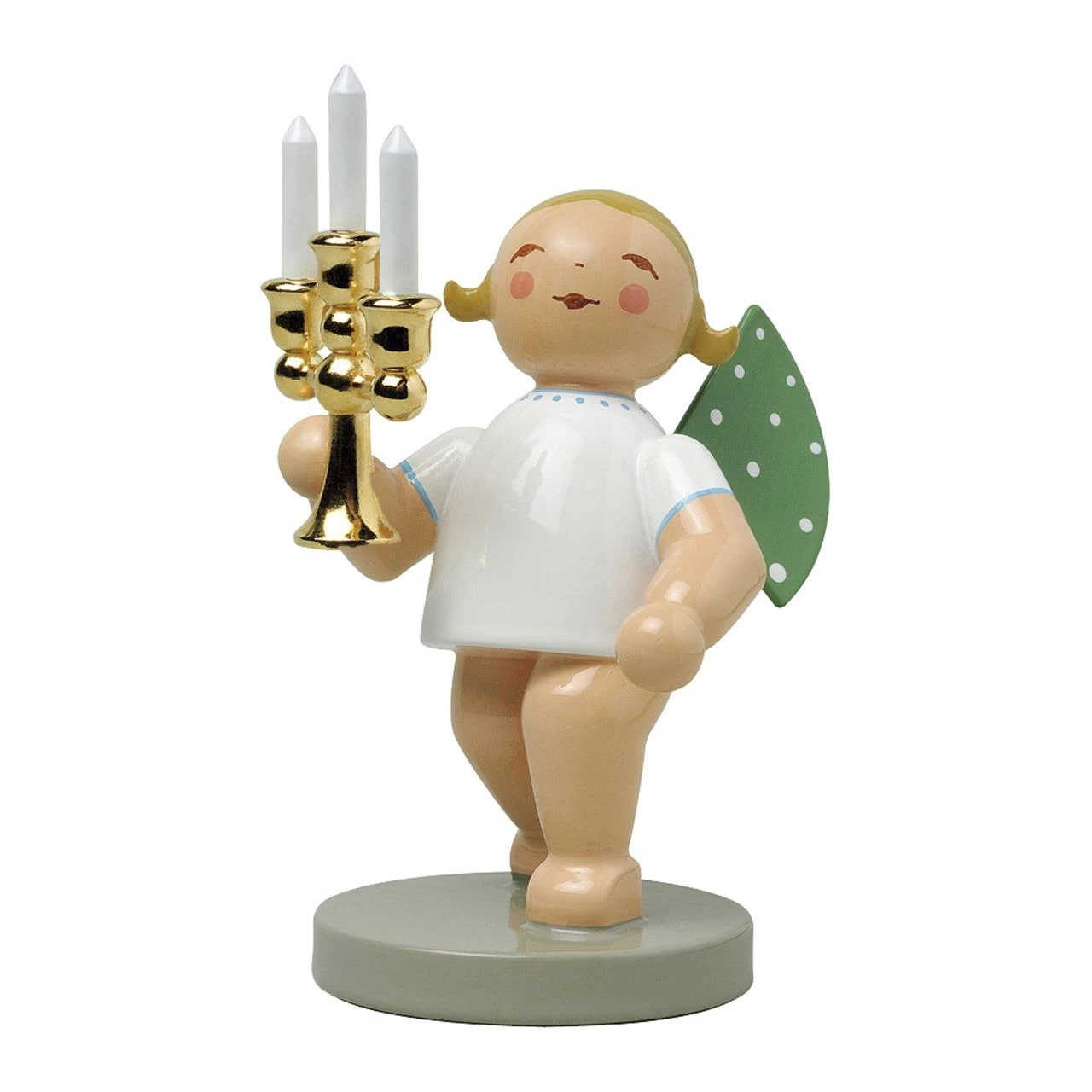 Stolz und würdevoll präsentiert sich in diesem Jahr der Lichterbote. Als Goldedition No. 4 ist sein stilvoller Kerzenleuchter vergoldet.