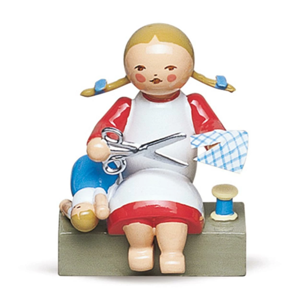 Das Mädchen mit den lustigen Zöpfen möchte vielleicht etwas Schönes für ihre Lieblingspuppe nähen.